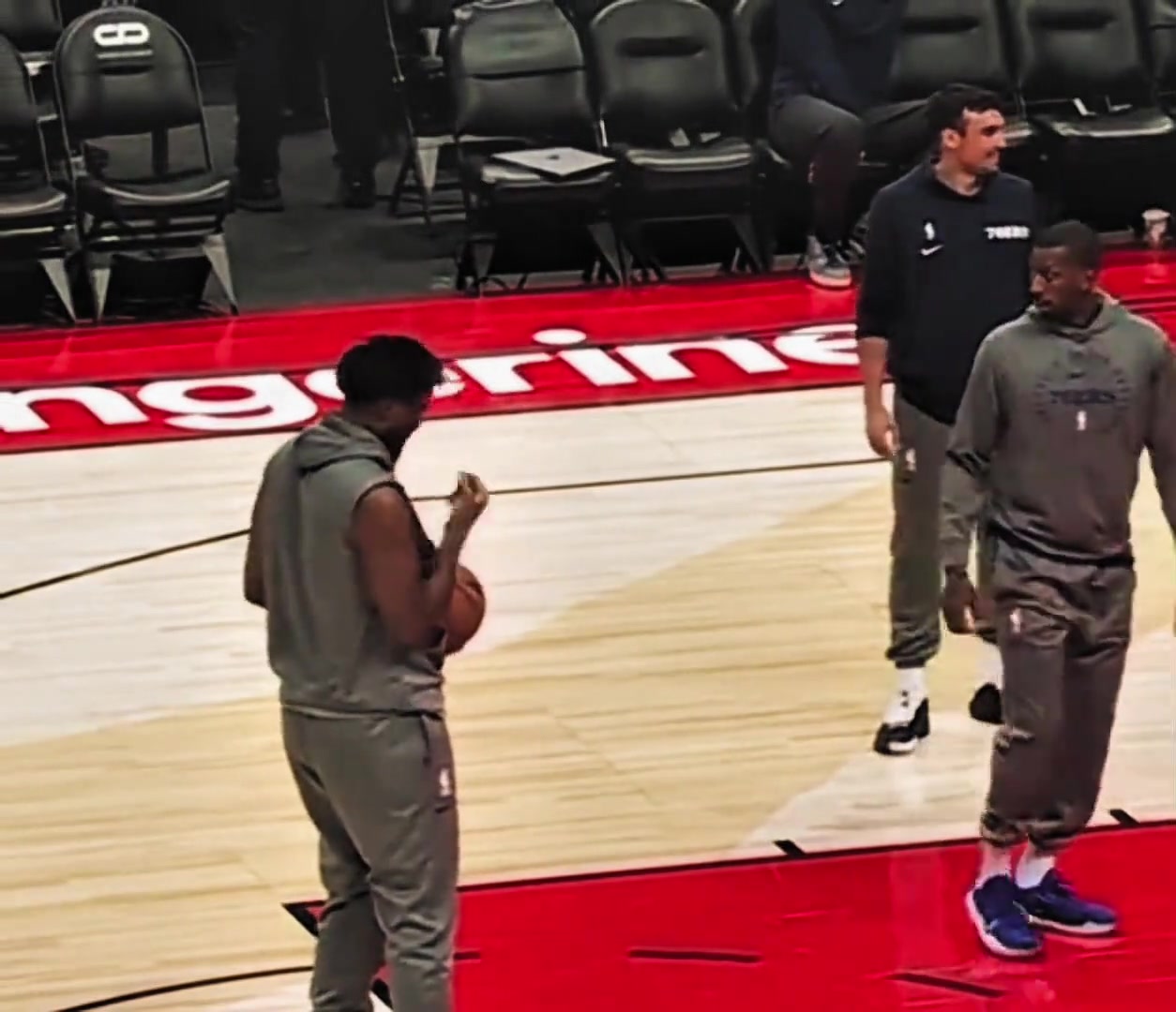 挺猎奇呀恩比德抠完腚手放鼻子上闻随后罚球